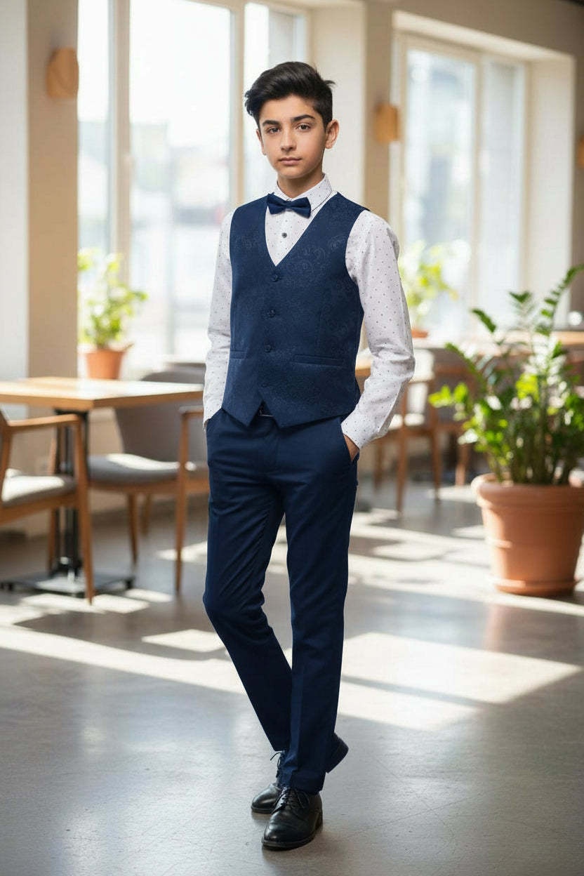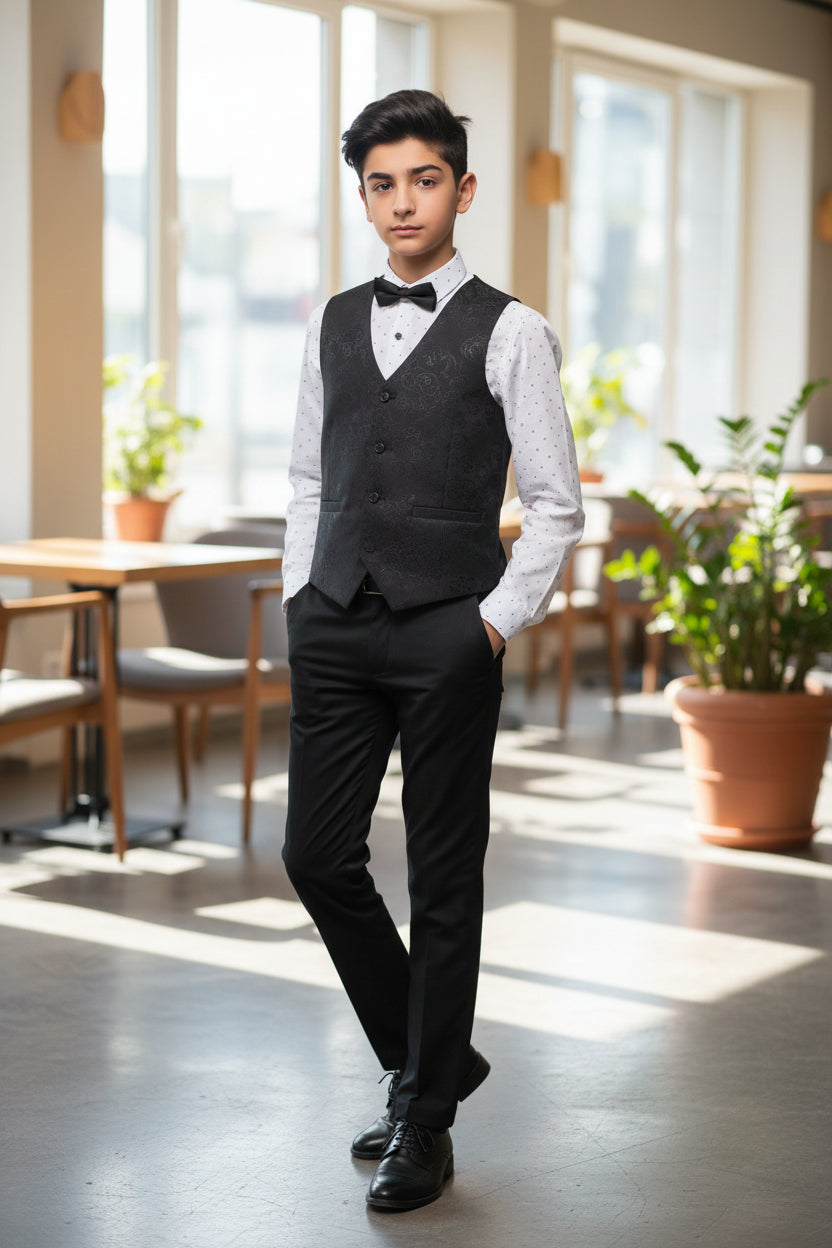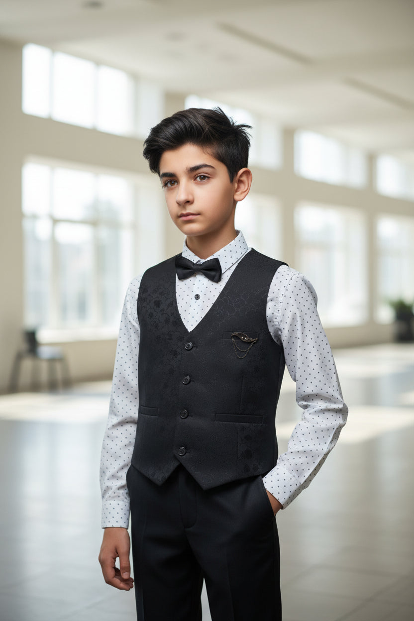 Complete your little boy's formal look with our elegant Waistcoat and Pant Set. Ready for a dashing and sophisticated ensemble, perfect for any special occasion.