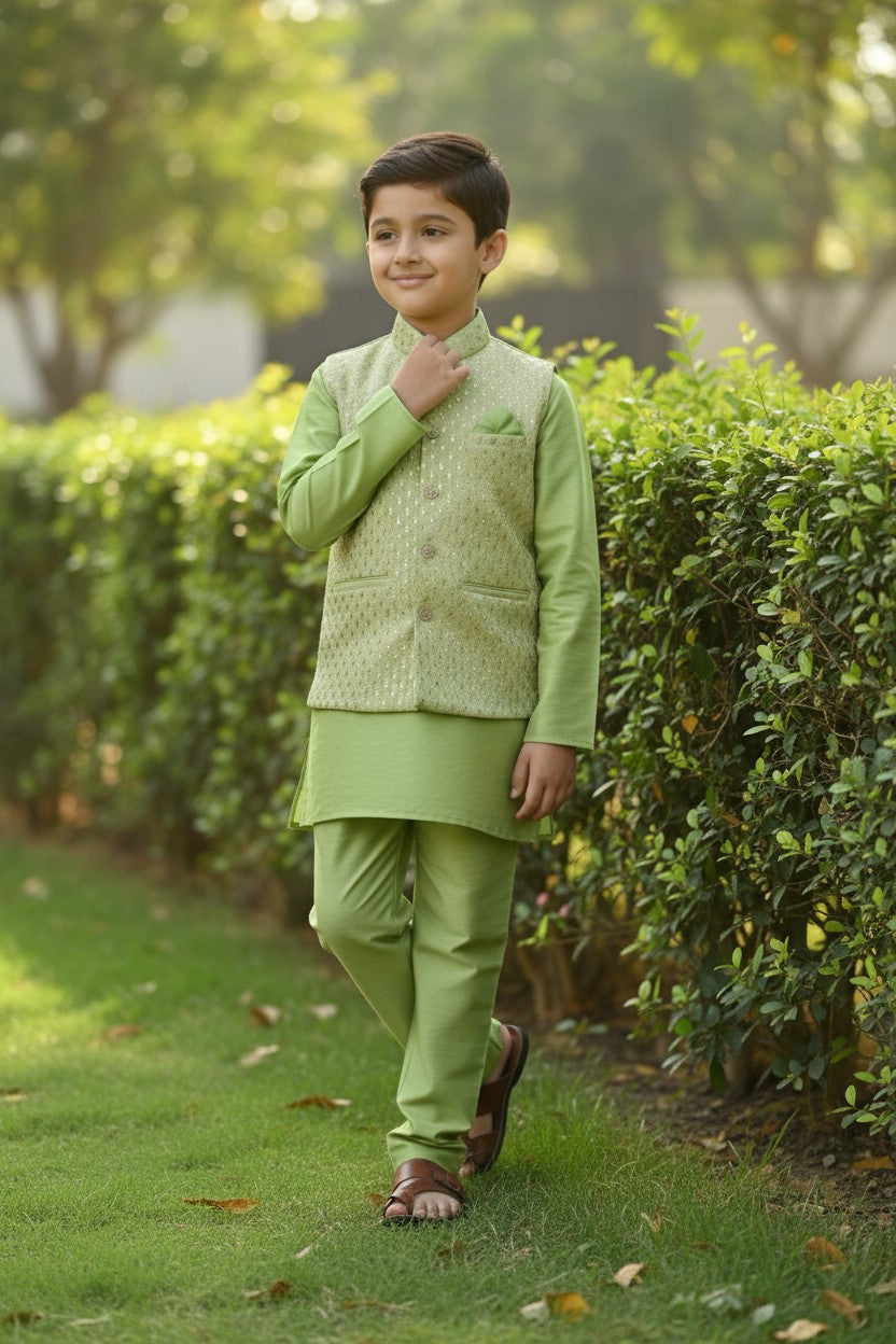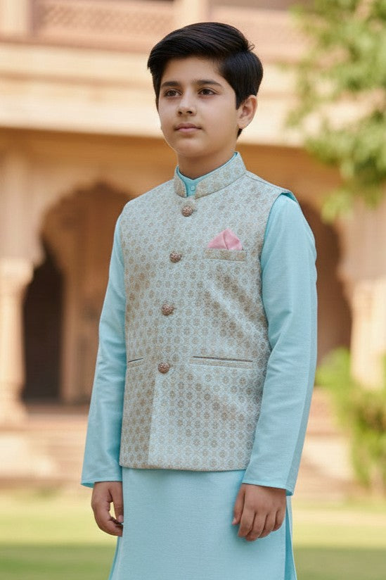 Exude charm on any occasion with our Classy Kurta Jacket Set. Perfect for celebrating moments in style and grace.