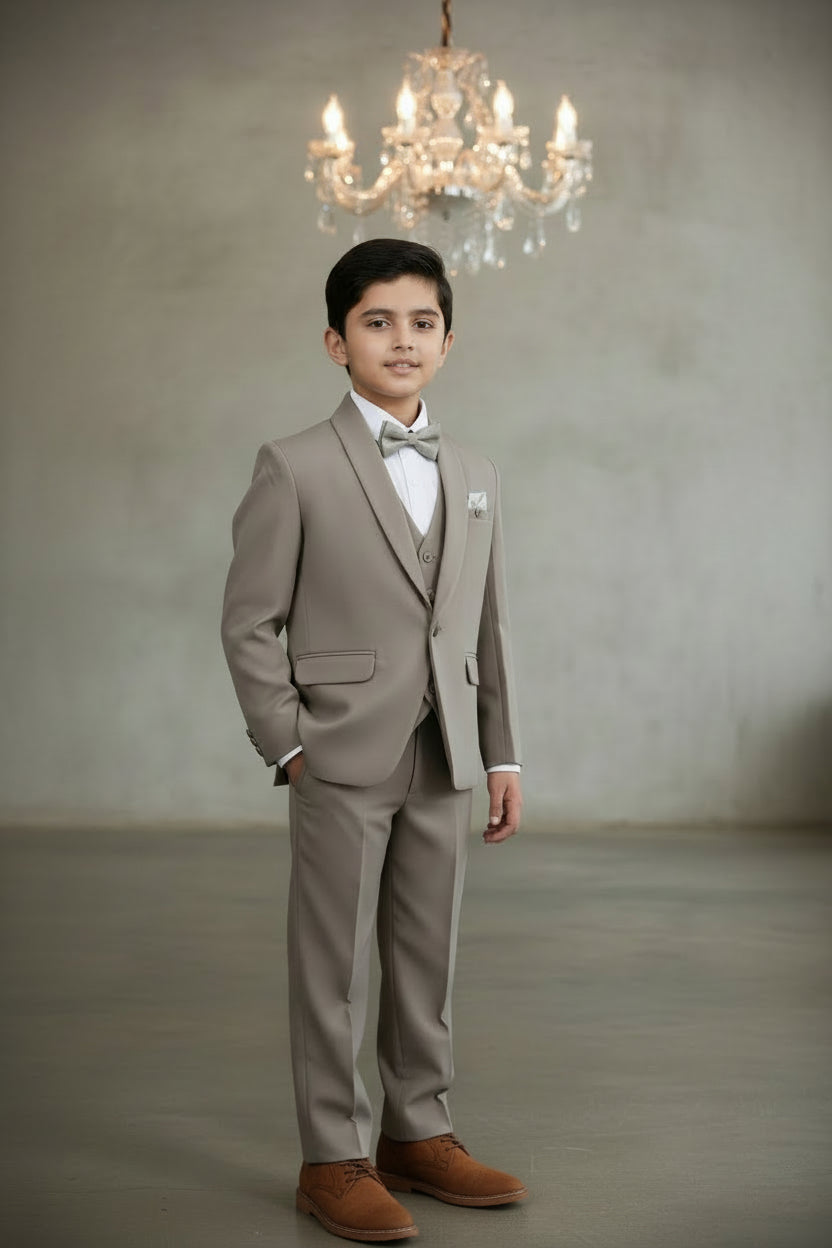 Elevate your kid's wardrobe with the four-piece suit. This suit offers a modern silhouette that exudes elegance. The sleek design adds depth, perfect for weddings and special occasions. This suit redefines sophistication, ensuring your kid stands out with refined style. Make a lasting impression with this exceptional ensemble.
