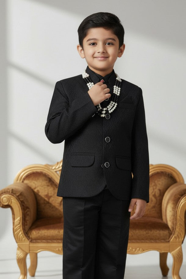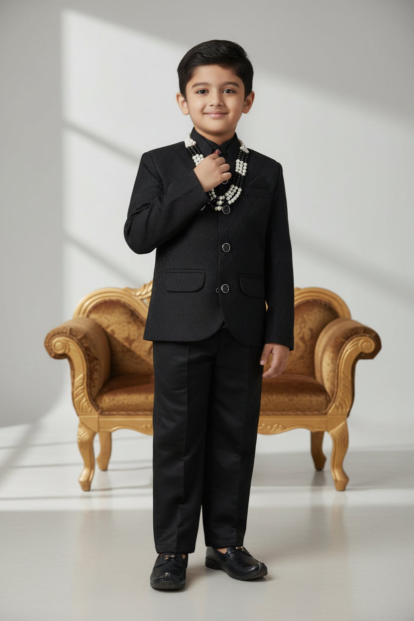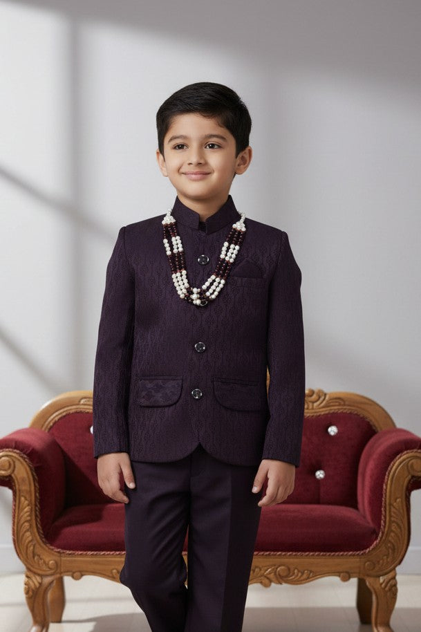 The suit's Jodhpuri style, highlighted by a bandhgala and beautiful buttons, exudes elegance. Perfect for formal occasions, pair it with sleek mala and leather shoes for a complete, sophisticated look.