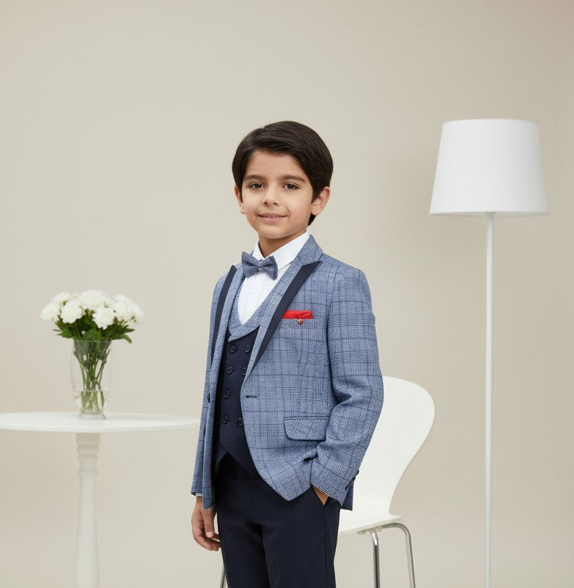 Introducing an impeccably designed four-piece suit from, this ensemble exudes sophistication with its unique style.It offers an exceptional fit that`s flattering for special occasions. The sleek silhouette effortlessly merges contemporary style with timeless appeal, making it a versatile choice for any event . Elevate your kid's presence with this distinguished suit, designed for those who appreciate style and refinement.