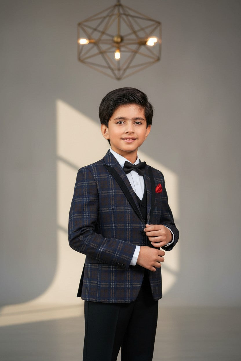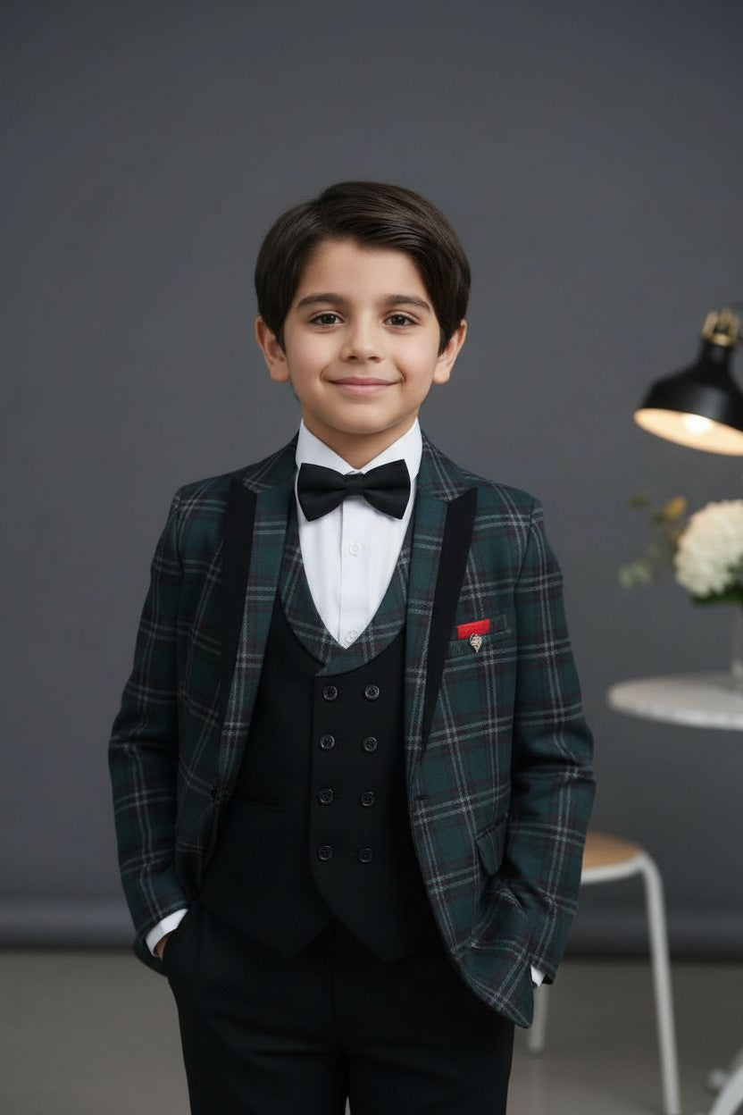 Introducing an impeccably designed four-piece suit from, this ensemble exudes sophistication with its unique style. It offers an exceptional fit that`s flattering for special occasions. The sleek silhouette effortlessly merges contemporary style with timeless appeal, making it a versatile choice for any event . Elevate your kid's presence with this distinguished suit, designed for those who appreciate style and refinement.