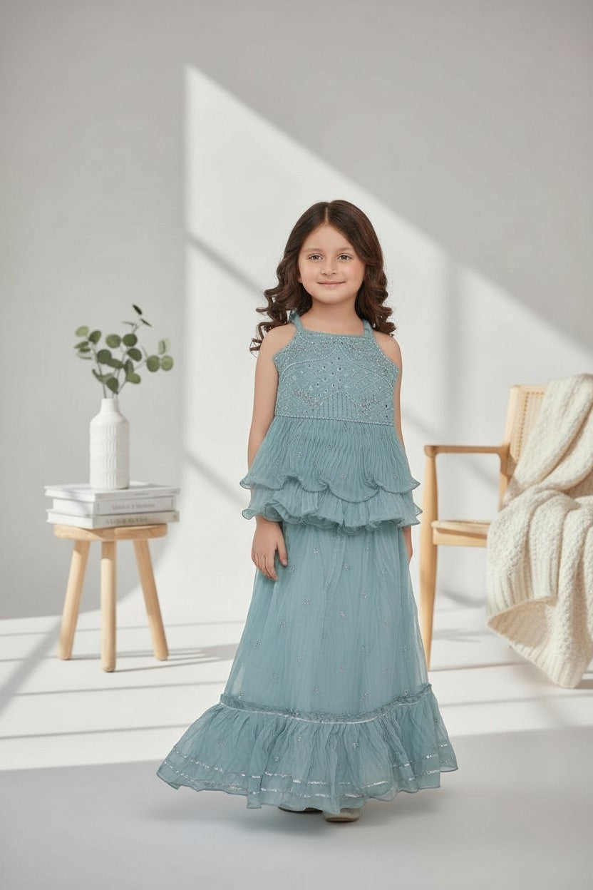 Experience the essence of sophistication and timeless beauty. Designed with a lavish flare and exquisite detailing, this lehenga set exudes style in every fold. Perfect for every celebration, it offers an impeccable drape and a majestic presence—making every entrance truly unforgettable.