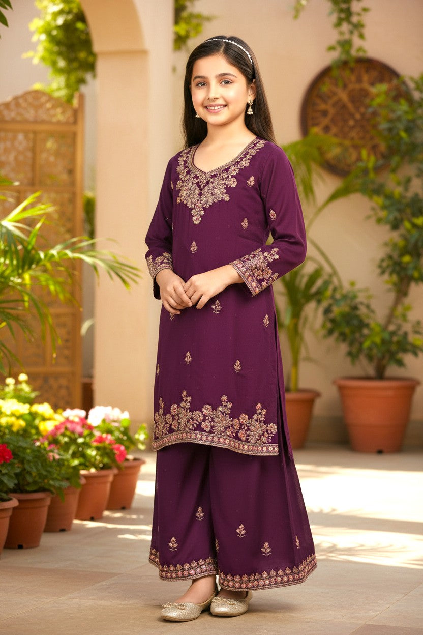 Designed with love and crafted with care, this exclusive Sharara Set blends premium fabric with complimenting embroidery. Perfect for Celebrations, it ensures your little one looks charming while feeling at ease.