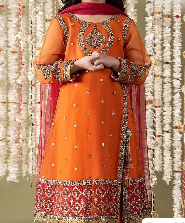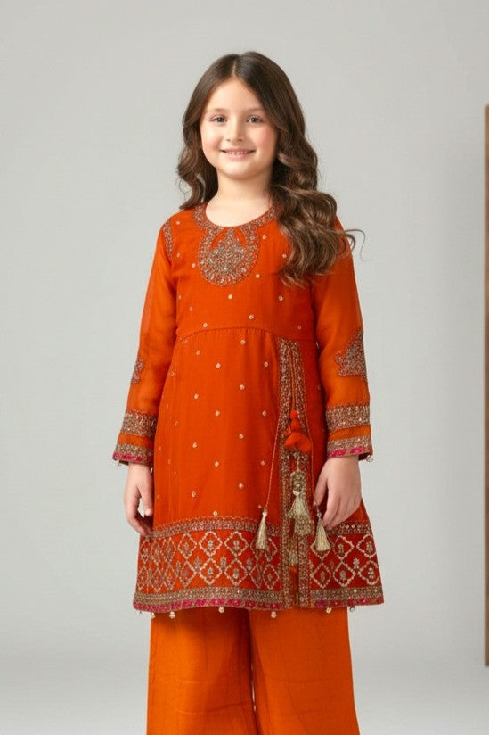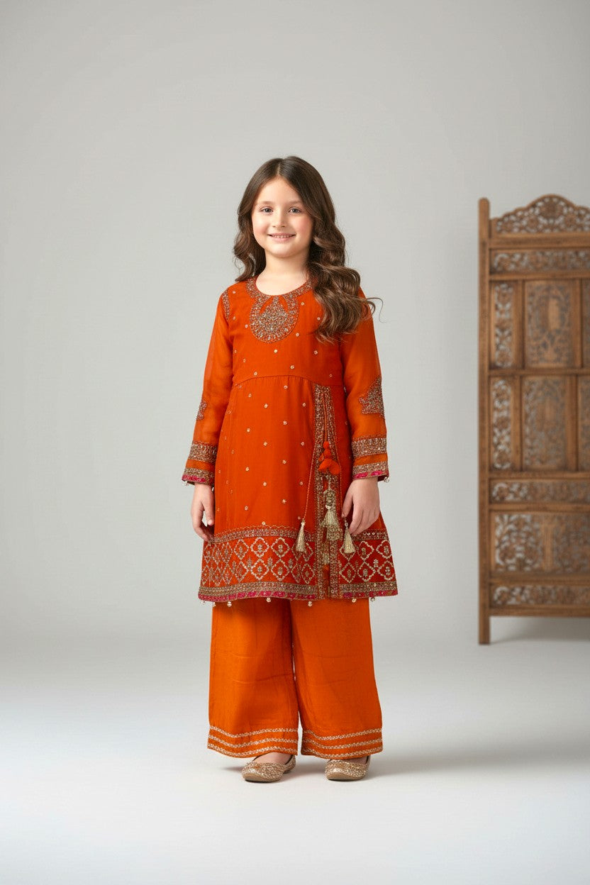 Let your little one shine in this elegant Sharara Set, designed to offer both freedom of movement and a refined appearance. A perfect choice for weddings, and festive occasions.