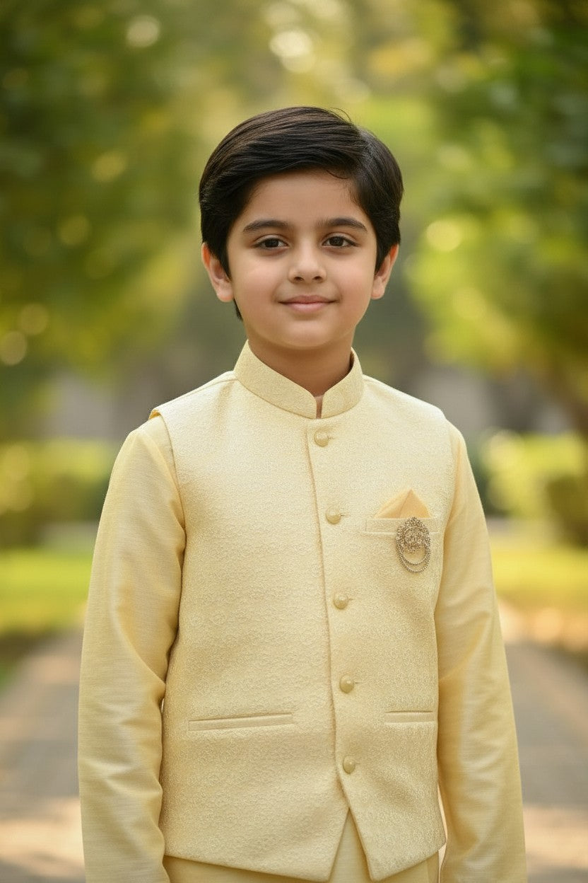 Indulge in the sophistication of this signature Kurta set. Made from top-tier blended cotton, it delivers both comfort and style. Perfect for all ceremonious occasions that require a touch of traditional charm.